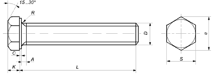 | S | DIN 933 | 5,5 | 7 | 8 | 10 | 13 | 17 | 19 | 22 | 24 | 27 |