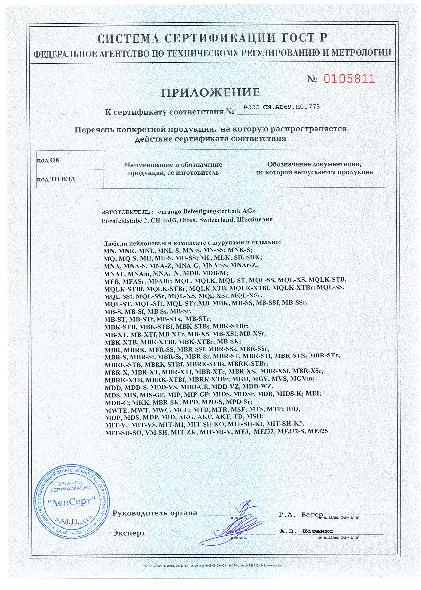 ETAG 020 - Сертифицирован для многоцелевого применения в бетоне и кирпичной кладке