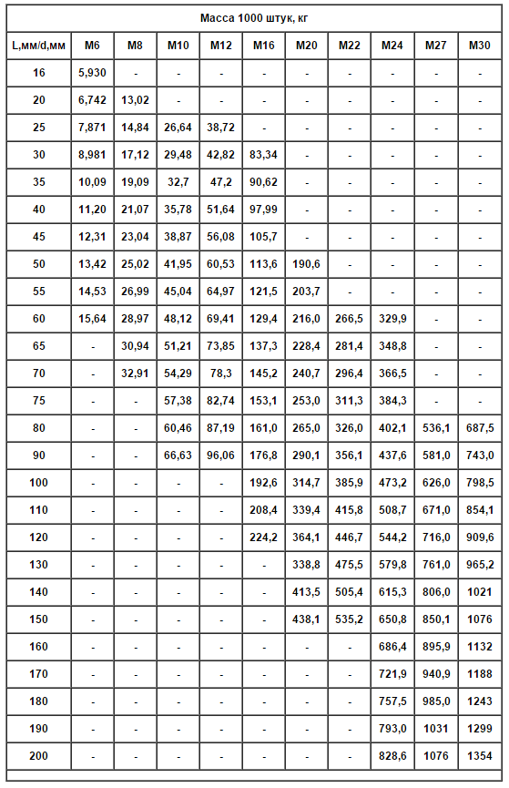 Таблица расчета веса