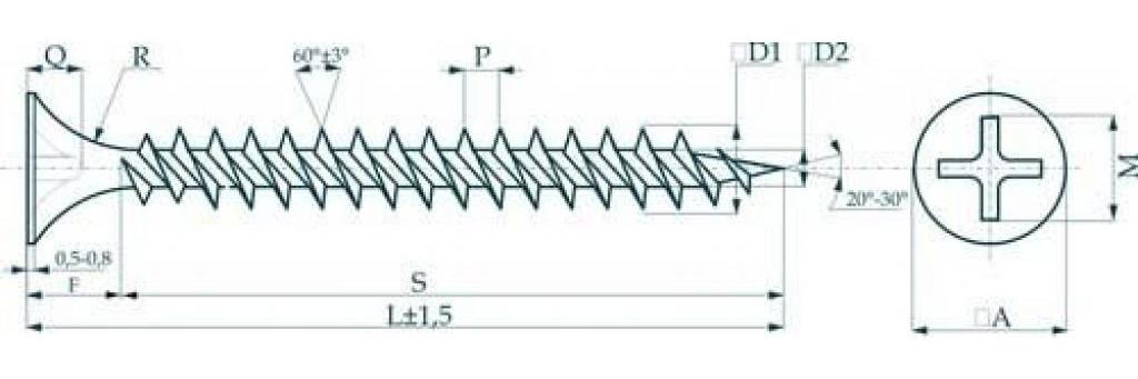 Диаметр крестообразного шлица ГОСТ 1145-80 (СТ СЭВ 2327-80) Шурупы с потайной головкой. Конструкция и размеры (с Изменениями N 1, 2)
