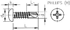 DIN 7504 N — саморез (шуруп) с полукруглой головкой с крестообразным шлицем Philips и буром на конце. Используется в строительстве, машиностроении, производстве металлоконструкций и прочих промышленных отраслях. Подходит для стальных листов и пластин. Может вкручиваться без предварительного сверления отверстий.Шурупы с буром по металлу DIN 7504 N производится из углеродистой стали, нержавеющей стали А2 и А4. Ниже приведены основные размеры и характеристики шурупов саморезов DIN 7504 N