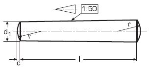 Размеры конических штифтов DIN 1 в мм