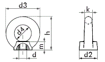 Рым-гайка DIN 582, размеры от М6 до М64. Рым-гайка применяется для поднятия тяжелых деталей и узлов машин. Рым-гайка имеет кольцо, предназначенное для захвата деталей и агрегатов при их транспортировке, сборке и разборке.